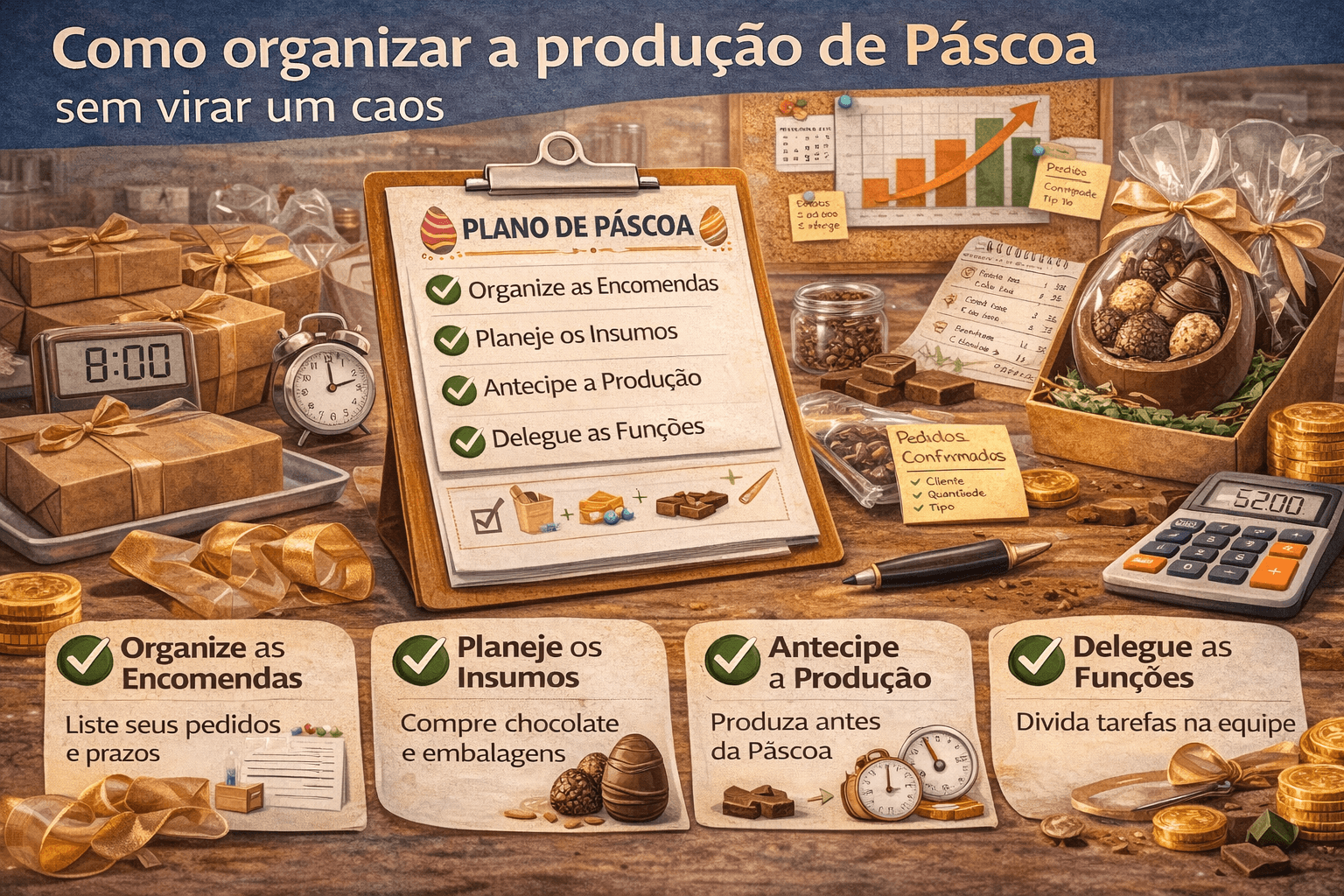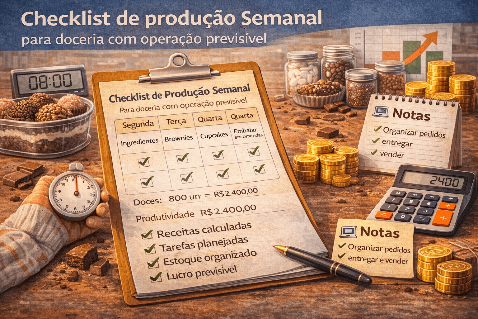 Organize sua semana com um roteiro de compras, produção e reposição para manter qualidade e prazo sem sobrecarga.