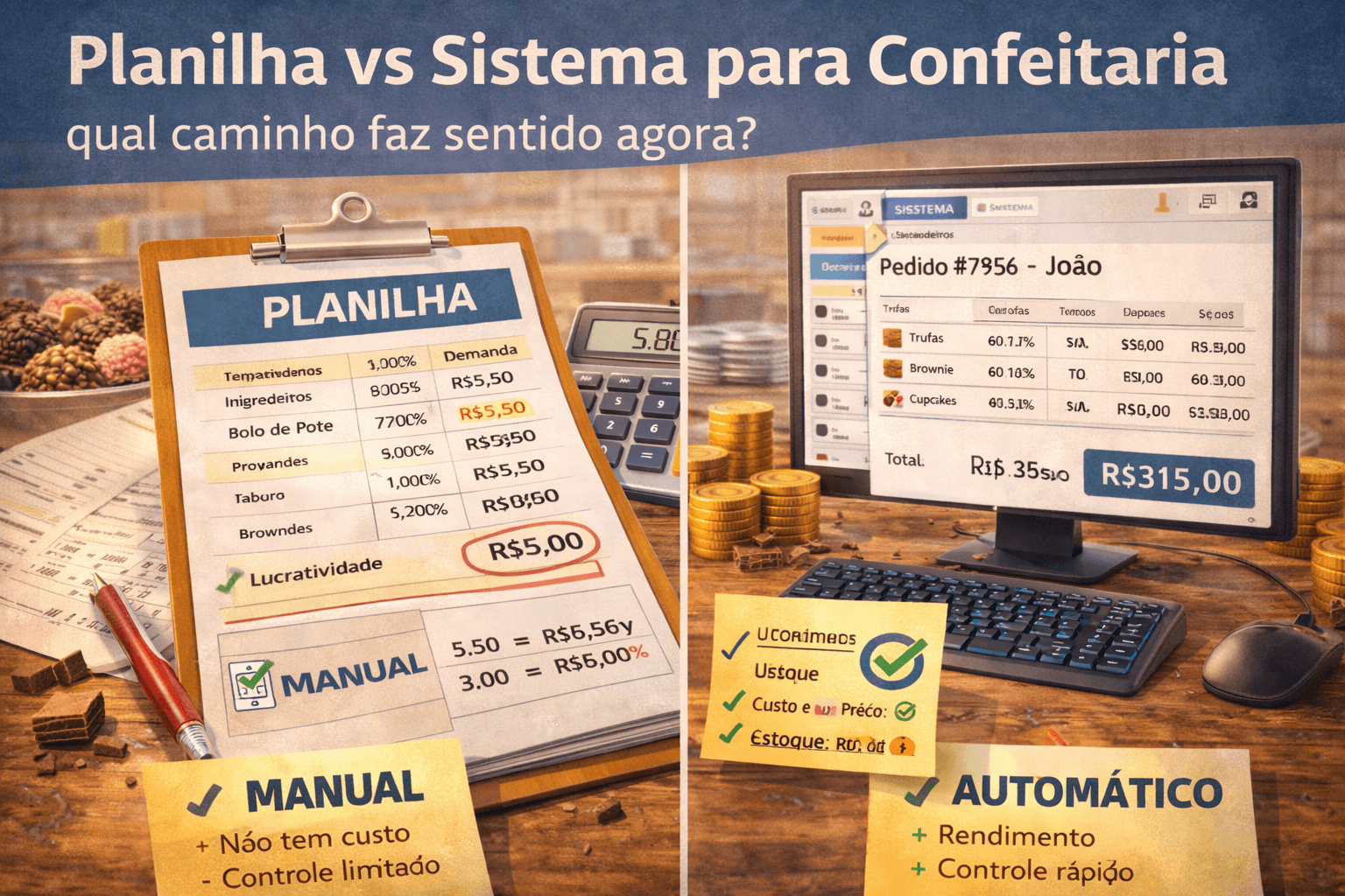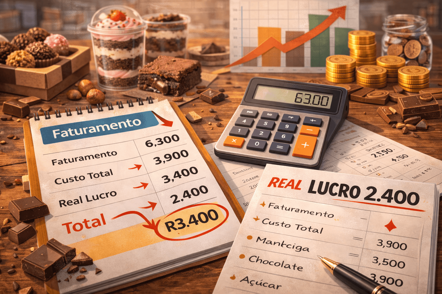 Entenda a diferença entre faturar e lucrar e aprenda a medir quanto realmente sobra em cada doce vendido.