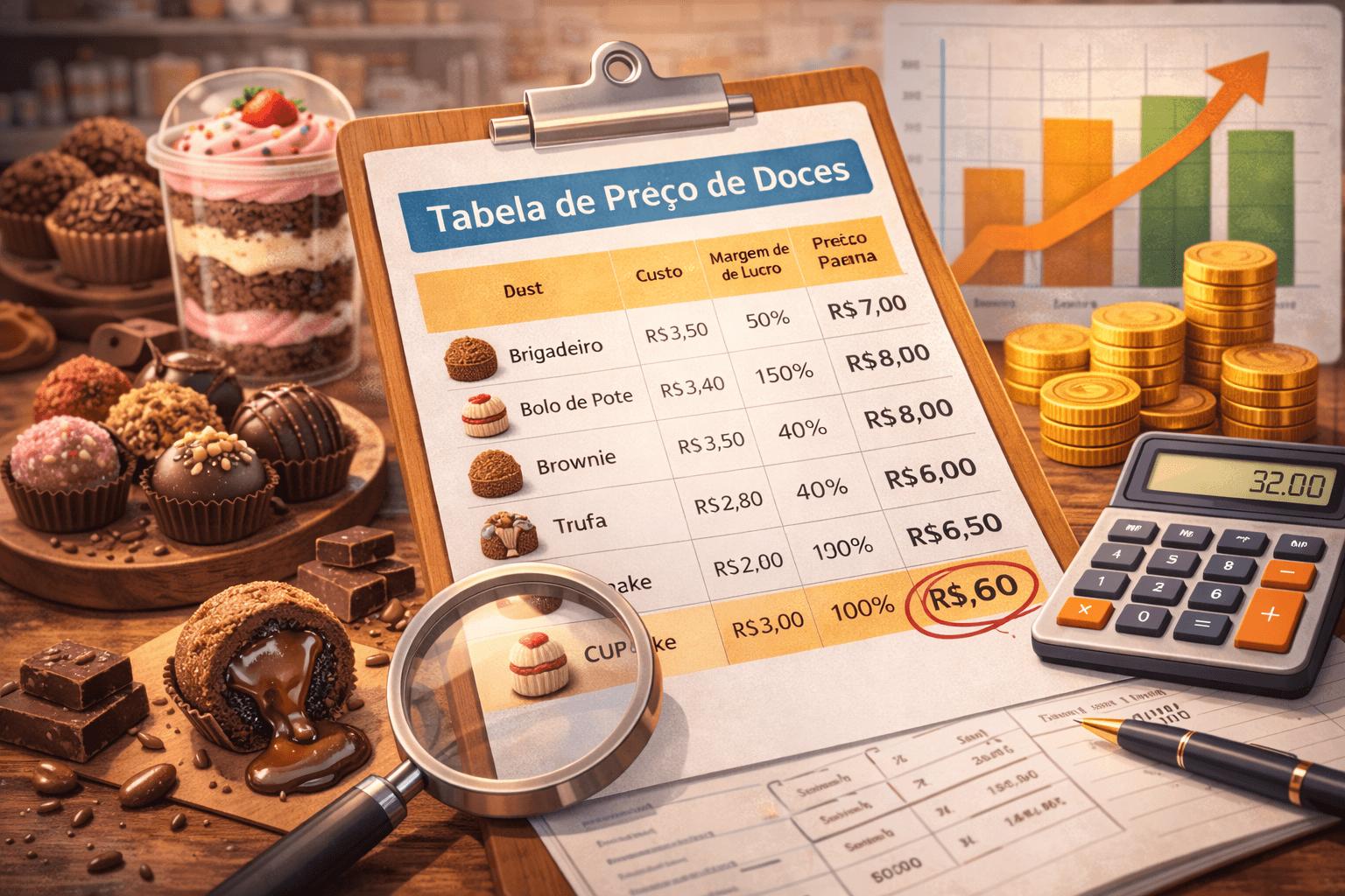 Veja como estruturar uma tabela de preço de doces com lógica de custo e margem, em vez de só copiar valores do mercado.